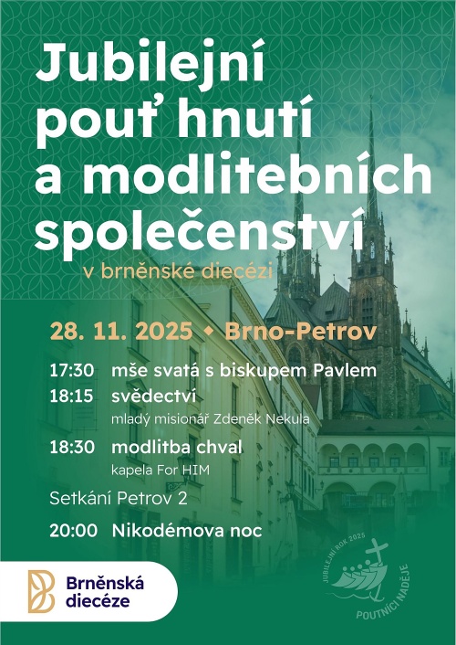 Biskupství brněnské zve diecézní hnutí a modlitební společenství na pouť v jubilejním roce do katedrály sv. Petra… VíceJubilejní pouť hnutí a modlitebních společenství